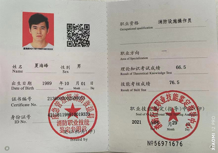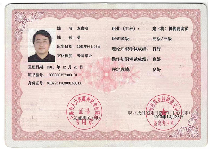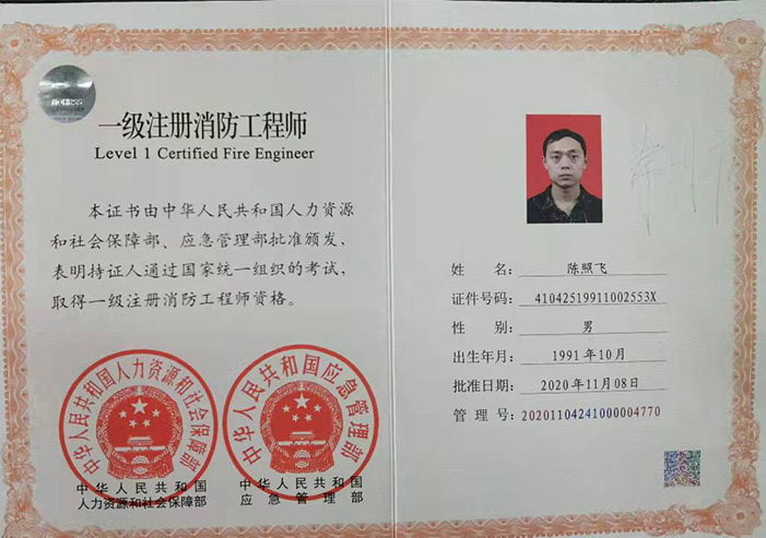 一级注册消防工程师注册证