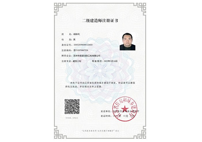 胡新利注册建造师电子证书