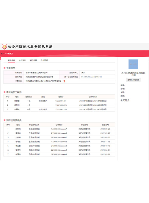持有公安消防部颁发的建筑消防设施维护保养技术服务资质